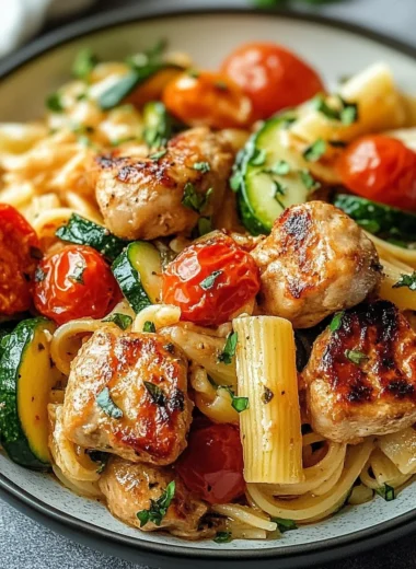 0 commentsChicken Sausages with Zucchini, Tomatoes, and Pasta is an amazing dish that showcases the perfect marriage of fresh ingredients and wholesome flavors. This recipe is not just a means to satisfy hunger; it’s a delightful experience that takes comfort food to another level. Combining juicy chicken sausages with vibrant zucchini […]