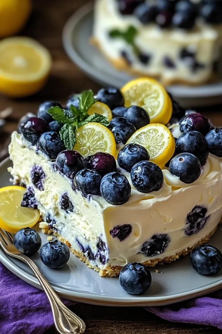 No-Bake Lemon Dazzling Blueberry Cream Cake is an amazing dessert that combines zesty lemon and luscious blueberries into a creamy delight. This cake, which requires no baking, is perfect for cooling off on a hot day or impressing your friends at your next gathering. Picture this: velvety layers of lemon-infused cream and a vibrant blueberry topping, all sitting atop a crumbly crust. It’s not just a cake; it’s a celebration of flavors and textures that will brighten any table.