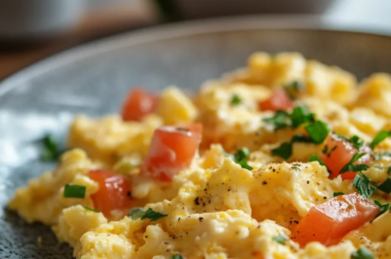 6. Impressive Presentation: Fluffy scrambled eggs look beautiful on a plate, offering an inviting start to any meal.